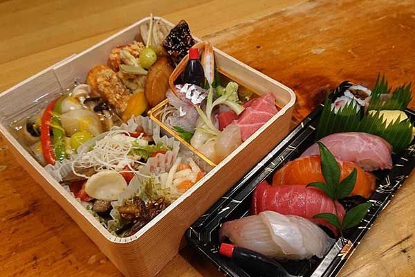 寿し会席2段折箱 (料理+寿し4貫と巻物) 5,800円より